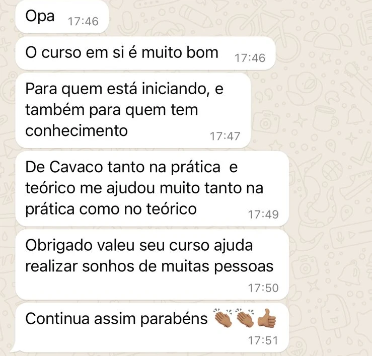 A ideia é NÃO te encher de conteúdos desnecessários, que mais vão te confundir do que te ajudar. Nesse treinamento você vai aprender na prática o necessário pra você conseguir “tirar onda” nos pagodes da vida!
